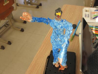 6年図工、よい作品。車掌さんですね。「メーテル・・・」「鉄郎・・・」