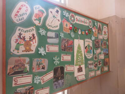階段の踊り場の掲示物にメリークリスマス。