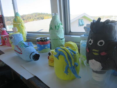 6年生の図工の作品が何だか不思議なオーラを放ちます。