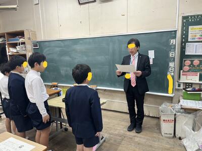今日、休み時間の廊下で、「校長先生、この前の名札はどうなりましたか?」と4年生に聞かれました。