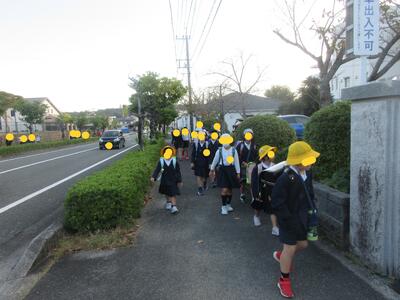 朝の登校のようすです。