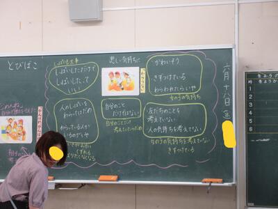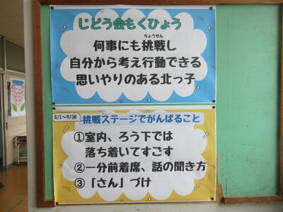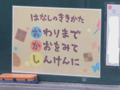 ひまわり、クラスの約束が、黒板左サイドに掲示されています。約束の見える化、いいですね。