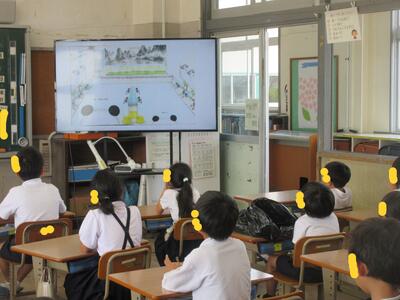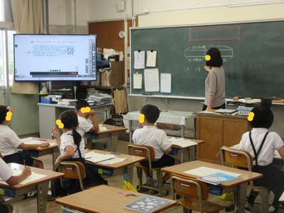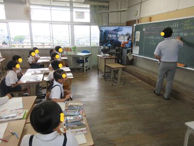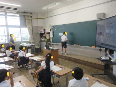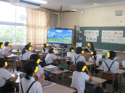 5年社会、いやいや教科書をモニターに映し出せるって、20年前の夢の世界です。