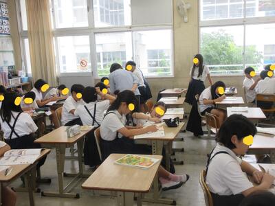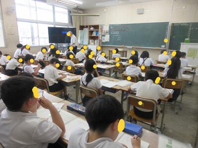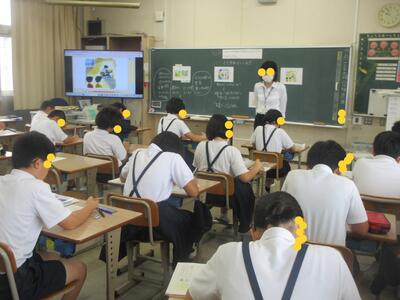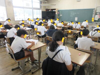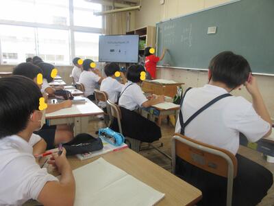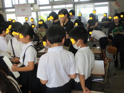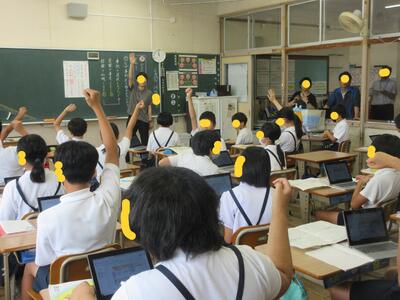3年外国語、一人だけ校長先生に向かってイエ~イ!このアピールが何だったのかあとで知ります。