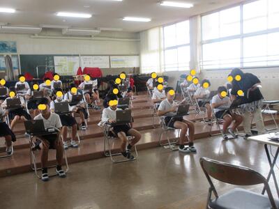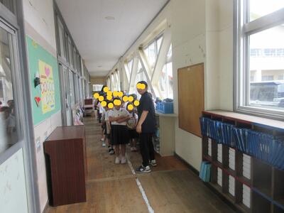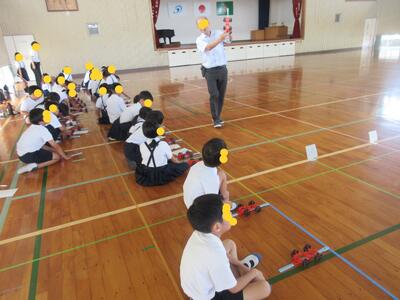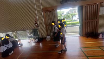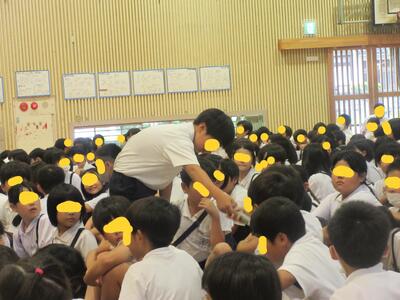 体育館に入るなり、「校長先生、体が重たかったです!」等、コメント攻撃に遭いました。