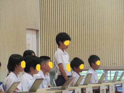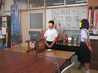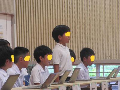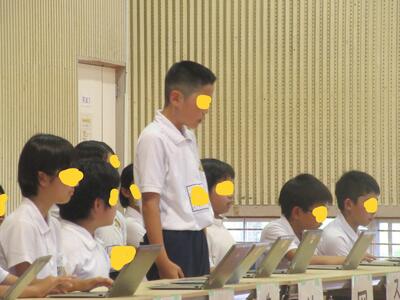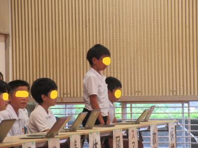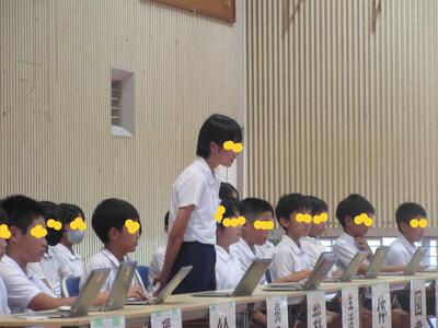 ひとつお願いしていいですか?朝、正門前で校長先生が立っていますが、とても気持ちのこもったあいさつをしてくれる人がいます。校長先生はあいさつをもらっただけで、とてもうれしい気持ちになります。だけど全員じゃないんですよね。昨年度の児童総会でも話したんですけど、あいさつ名人をもっと増やすにはどうすればいいですかね?児童会で話し合ってくれたらうれしいです。