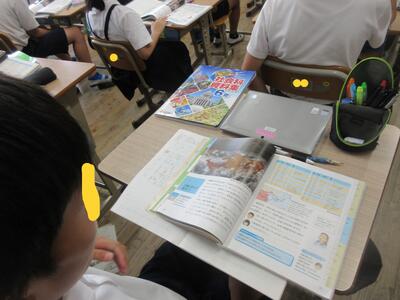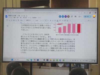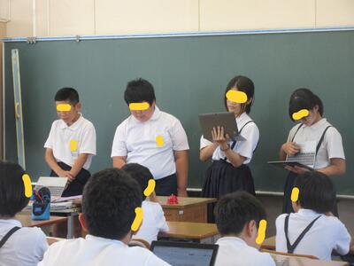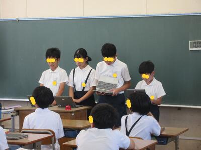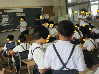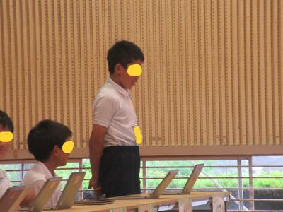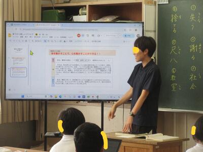 教科書には2人の発表が例示されていましたがそれをあえて逆に提示しました。