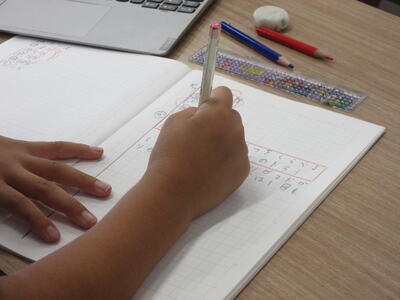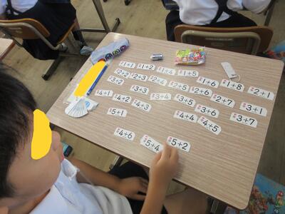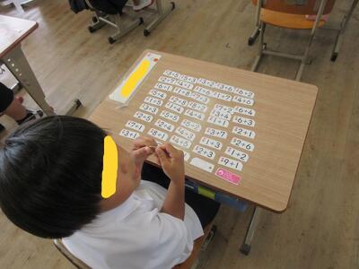 2年算数、プリント学習、終わったら先生にマルをもらう。