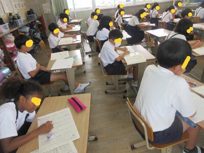 今日は、2校時、3校時、4校時と、研究授業です。本渡北小では、校内研修の時間を設け、先生たち同士が授業づくりについて学び合う時間を設けています。その一つは、研究授業です。1つのテーマに沿って授業を公開し、よりよい授業づくりのために意見交流をとおしてよりよい授業を探究します。