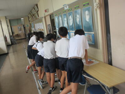 今週の水曜日、北っ子の集いがありました。その中でO先生から話がありましたね。担任の先生から話を聞いていると思いますが、あの次の日から、シャツ入れとか、登校班の並びとかに変化があったんですよ。すごいですね。話を聞いてすぐ実行する、校長先生のは本渡北小のすごいところはここだと思っています。