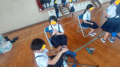 午後、4年生は、高齢者等疑似体験教室です。社会福祉協議会の皆様、ありがとうございます。