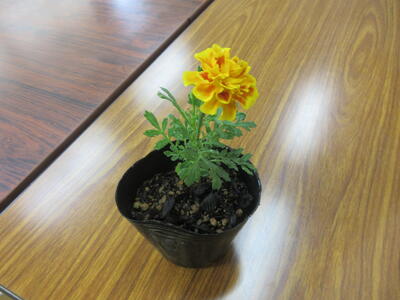 「校長先生、いつもありがとうございます」と5年生が育てたマリーゴールドの苗をプレゼントしてくれました。家の玄関前アプローチに飾ります。