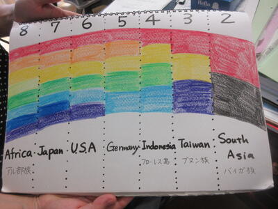 昼休みに外国語専科のN先生が”世界で違う虹の色と数”世界を見せてくれました。