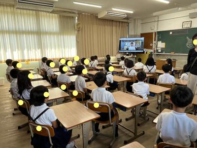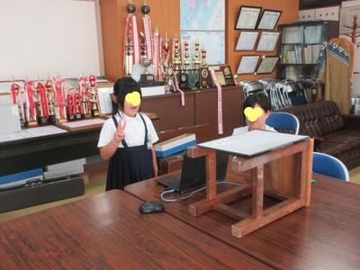 実は、リモートによる始業式の教室での様子を教頭先生に撮影してもらいました。こんな様子です。