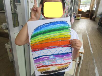 2年図工すごくステキなタマゴ。下描きも見てましたがきれいに塗り分けましたね。