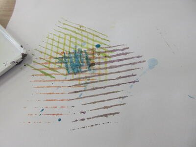 6年図工、問題です、これどうやって作成したと思いますか?正解は6年4組へ・・・。