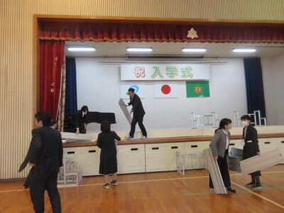 みんなで協力して入学式の準備、そして片付け、これも本渡北小のステキな魅力です!