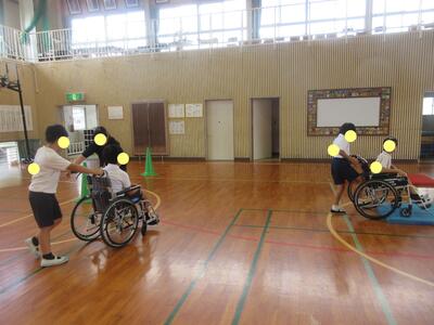 4年総合的な学習、福祉、さまざま疑似体験です。