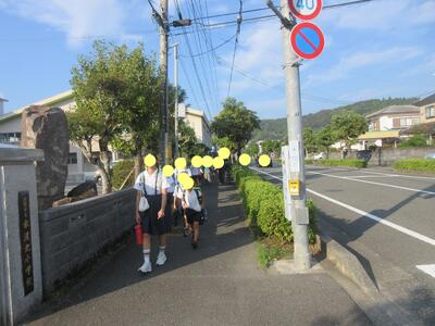 朝の登校のようすです。