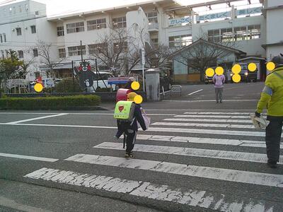 正門前横断歩道、私は学校と反対側に立っているため、アングルがいつもと違います。