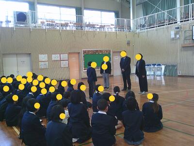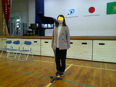 校長先生は、2学期の終業式、「好きなこと、得意なことだけじゃなく、人生はやらなくちゃいけないことをきちんとやることが大切です。新しいことにチャレンジしたり、苦手なことにチャレンジしたりすることはとても大切だと思います。それが自分の人生を、未来を、もっと豊かなものにしてくれると思います。学校生活の中には好きなこと、得意なことばかりじゃないと思います。でもそれにチャレンジし続けるみなさんであってほしいなあと思います。3学期のチャレンジを決めてくださいね。」と話をしました。