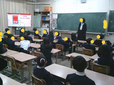 産前休暇に伴い、体制の変更により、社会専科のM先生のお別れのあいさつです。