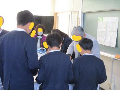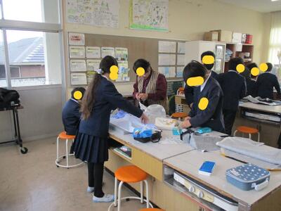 少し早く来られたので、「校長室にどうぞ」とご案内しても、子どもたちより先に家庭科室に行かれ準備いただきます。(上の写真から1/21分です)