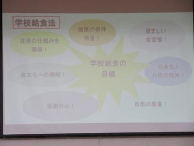 給食の意義、給食センターでの調理の様子など、安全で安心な給食づくりのためのプロの意識に触れました。