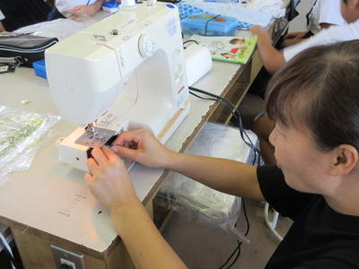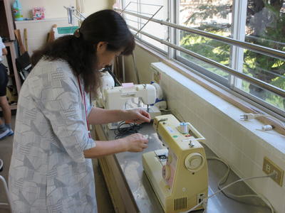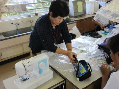 5・6年生は家庭科の学習で、ミシンを使ってナップザックやクッションなどの製作をします。