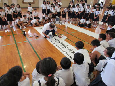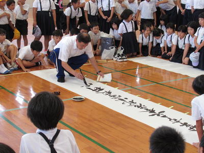 実はこの書、来週に行われる「本渡北小学校研究発表会」の垂れ幕を書いてくださったんです。