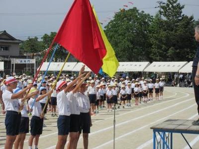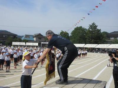 黄団からの優勝旗返還。さあ、今日はどの団に優勝旗が渡るのか?