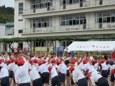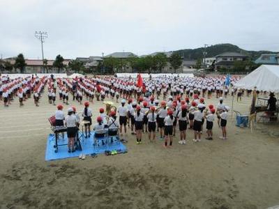 今日の練習から、吹奏楽の演奏も入りました。やっぱり生演奏いいですね。北小学校のよさです。
