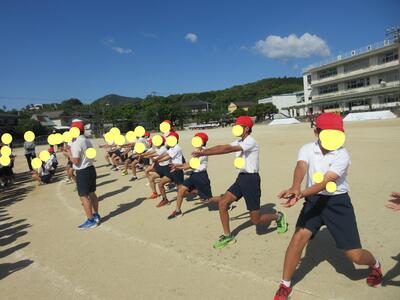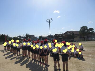 昼休みに、運動場で団対抗リレーの初めての練習が始まって、見に行ったら、閉会式の成績発表の練習もしていたので、参加しました。