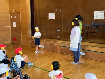「校長先生見てください」とアピールする子、