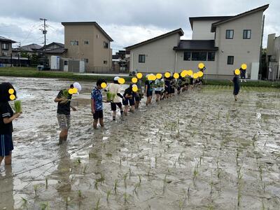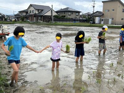 拓心高校の皆様のご厚意により、5年生は田植えを体験させていただきました。