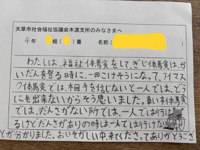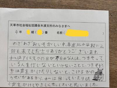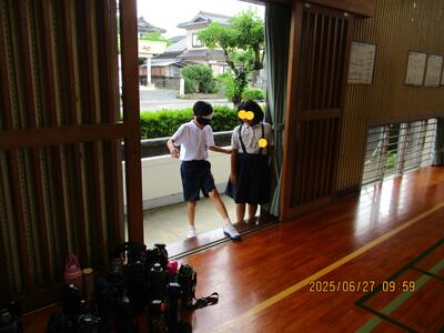 アイマスク体験はどの子も「怖かったあ~」と感想を言っていました。