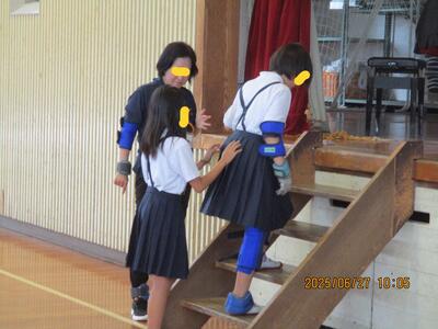 先日に続き、高齢者等疑似体験(福祉体験)教室を実施しています。