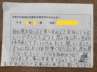 4年生は、社会福祉協議会の皆様に来ていただき、高齢者疑似体験教室を開催しました。