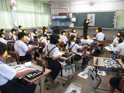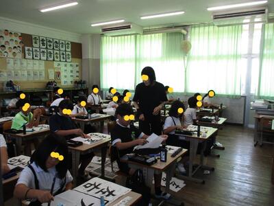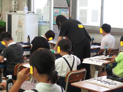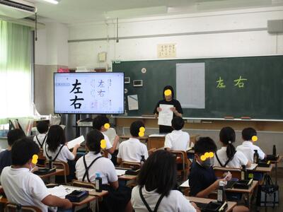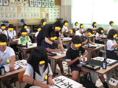 2学期開始2日目ですが、今週は4年の毛筆指導に来ていただいています。