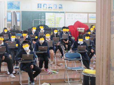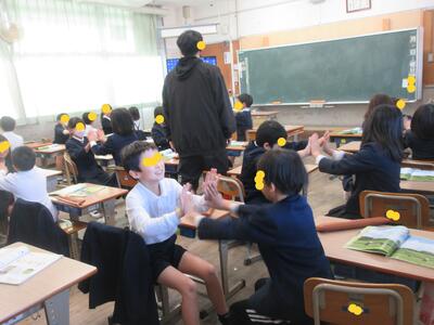 3年音楽、先生から「歌ってね!」の声、みんな動作に全集中でした。