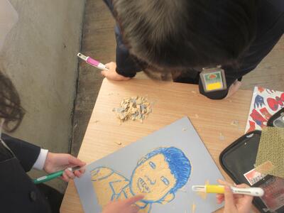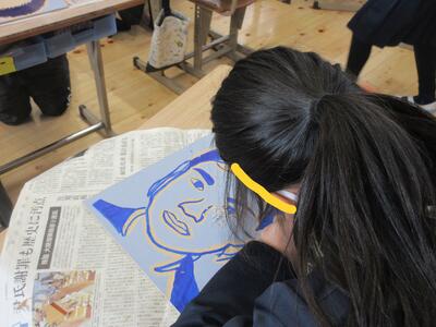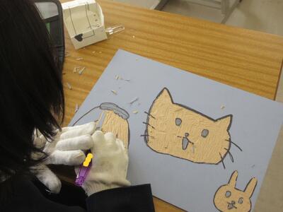 6年図工、木版画、始まりました。仕上がりが楽しみですね。
