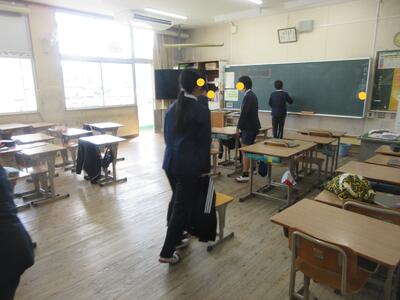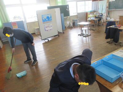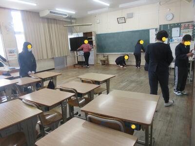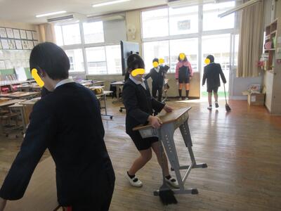 6年生の無言掃除の様子を紹介しながら。※「きれいになった」は「成長した」とおき変えてください。