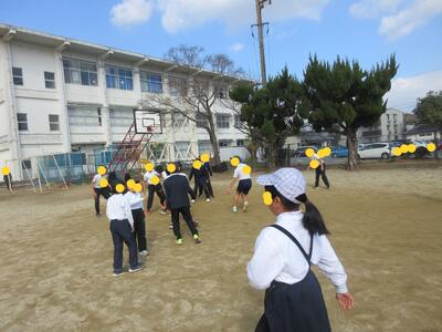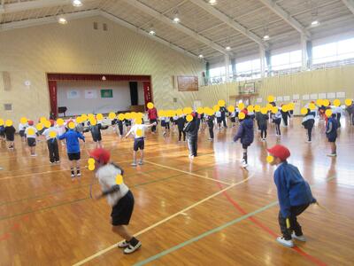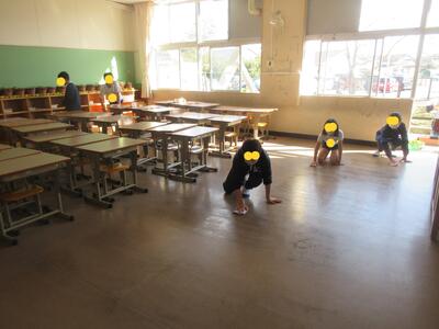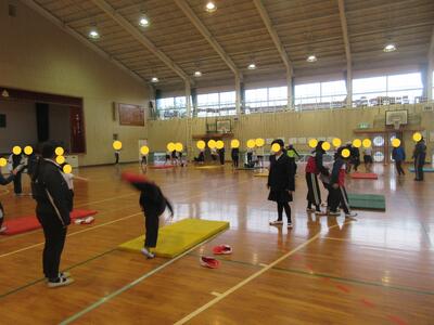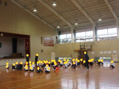 1年体育、話の聞き方が上手です。目玉以外が動かない。