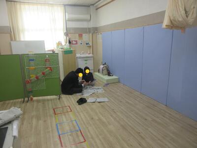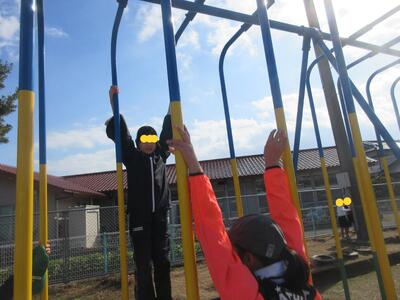 バスケットボールです。実は違う子たちとゴールを共有しています。すごいです。