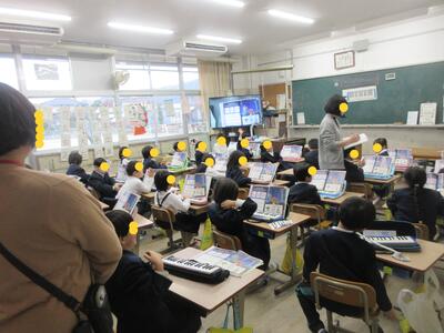 3年音楽、アプリでリズム作品を作って、聞かせに来てくれました。