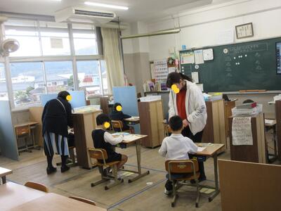 先生たちはいくつかの持ち場を回るため、先生がいないシーンが多々ありますが、無言です。