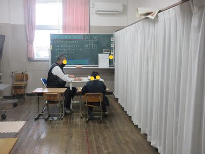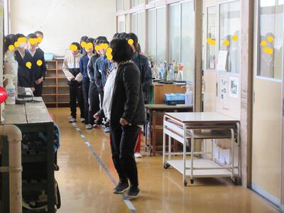 6年、身体測定に向かうところ、並んで静かに移動、先生たちの支援もあり、子供たちきちんとできています。こういうことがきちんとできるって大切なことです。