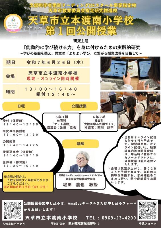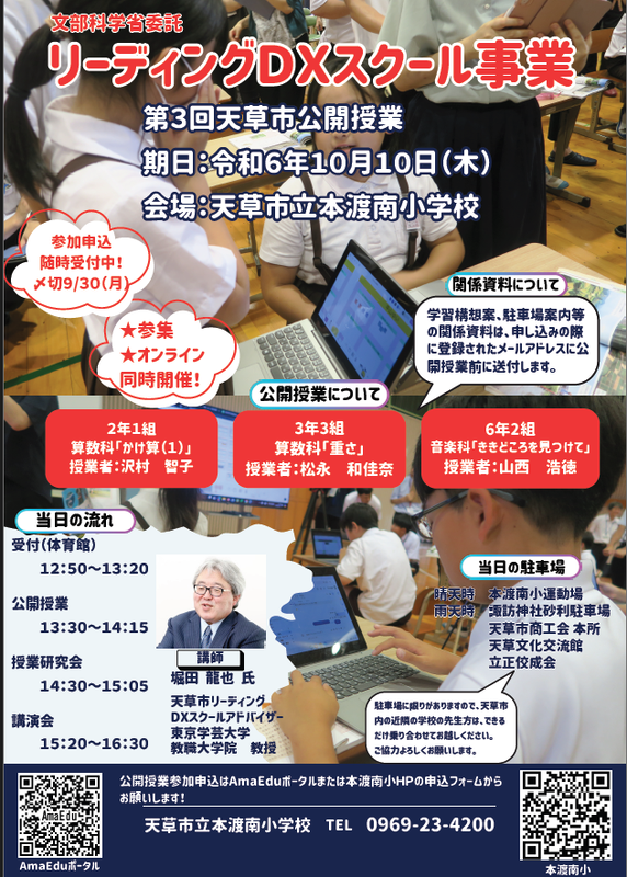 天草市第4回公開授業参加申込 申込〆切:令和7年1月15日(水)