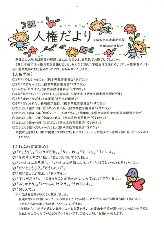 人権月間(1学期)の取組のお知らせ
