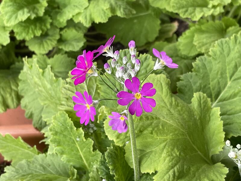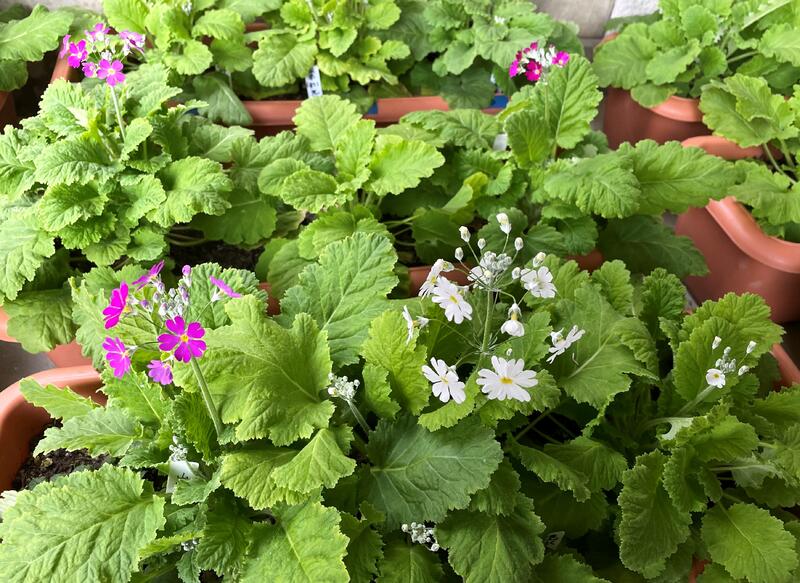 7月に種から育てたサクラソウです。卒業式には、会場正面、ステージの下に飾られる予定です。